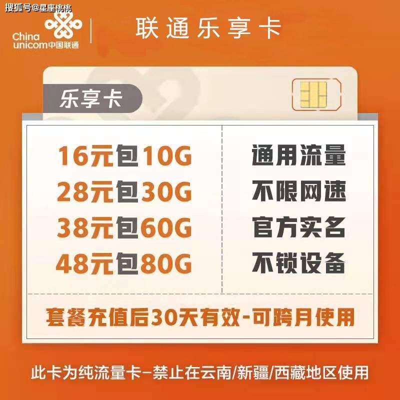 如果你觉得10G不够用,100G又多了,那你可以选择联通乐享卡这个流量卡,它16元10G,28元30G,38元60G,48元80G。你可以选择30G或者60G的,正正好好。之前我上高中的时候不太使用手机,流量用的不是很多,我买的就是它。这个卡特别稳定,在这里我要告诉你们一个道理,不稳定,网速再快都是扯淡,当然,建立在网速能正常使用的情况下。
